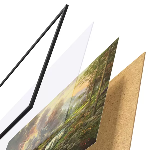 Il poster è composto da cornice, plexiglass, immagine stampata e supporto in truciolato. Il poster può essere immediatamente appeso alla parete grazie ai supporti sul retro.