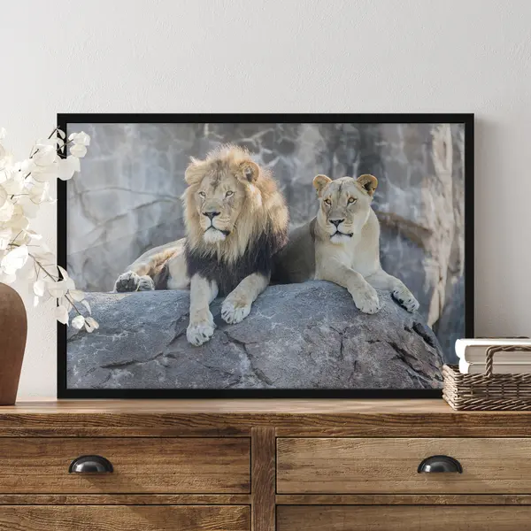 Poster Maestosi leoni che riposano insieme pacificamente f15278