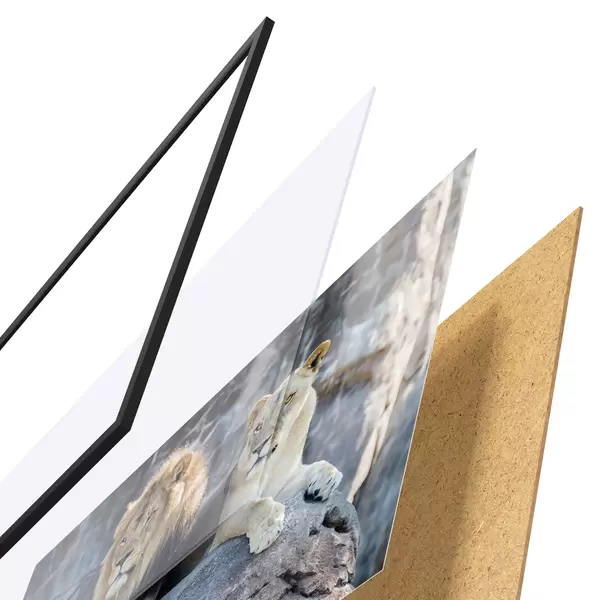 Il poster è composto da cornice, plexiglass, immagine stampata e supporto in truciolato. Il poster può essere immediatamente appeso alla parete grazie ai supporti sul retro.