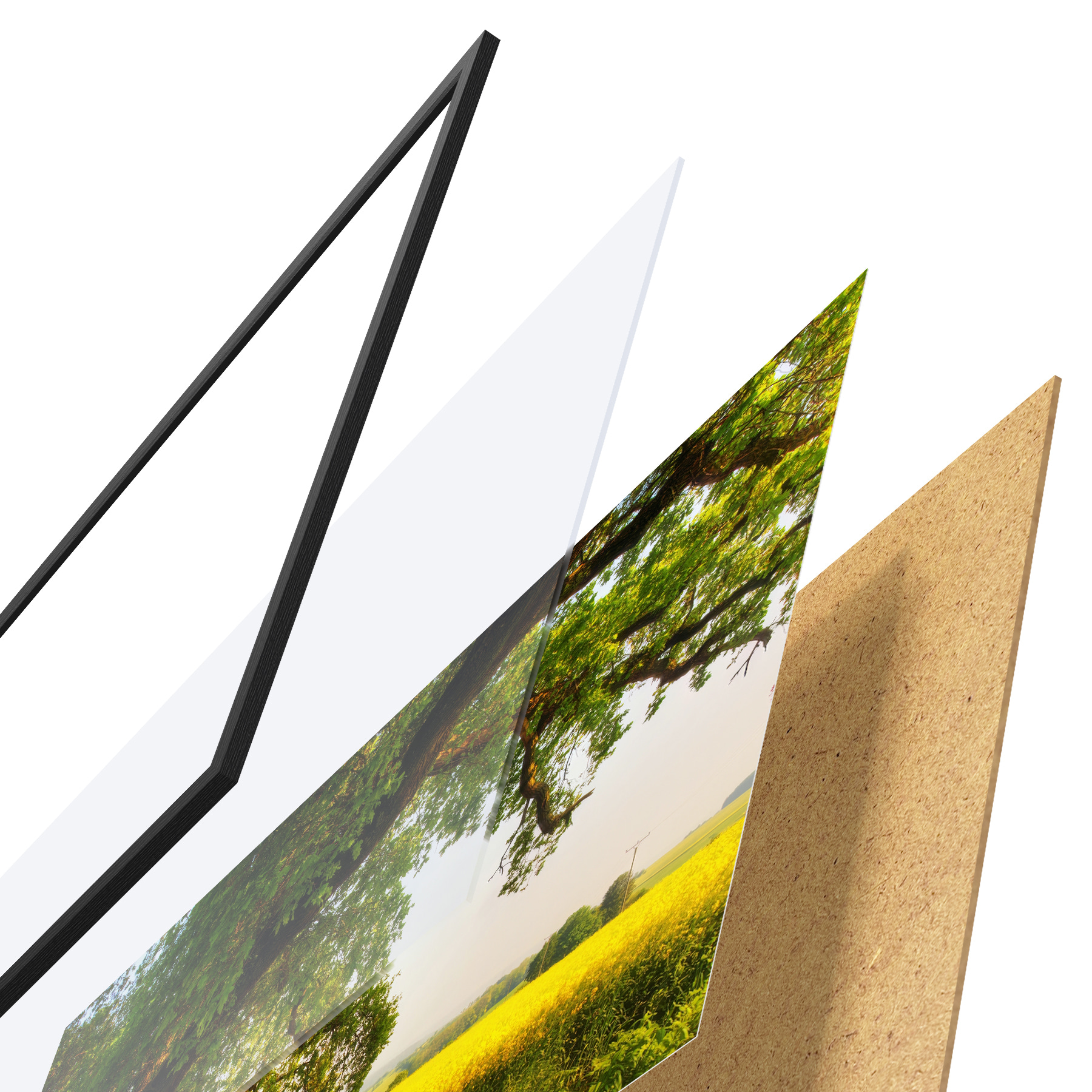 Il poster è composto da cornice, plexiglass, immagine stampata e supporto in truciolato. Il poster può essere immediatamente appeso alla parete grazie ai supporti sul retro.