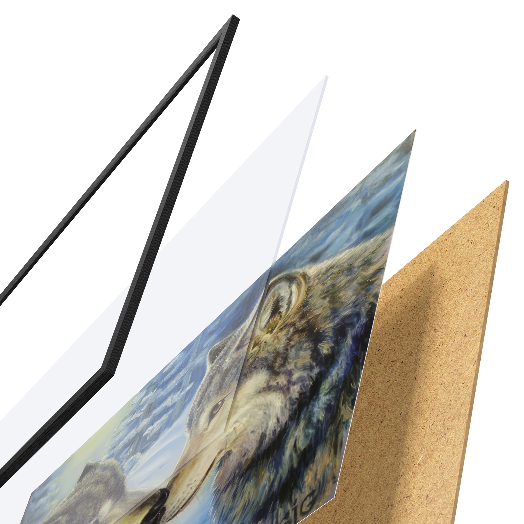 Il poster è composto da cornice, plexiglass, immagine stampata e supporto in truciolato. Il poster può essere immediatamente appeso alla parete grazie ai supporti sul retro.