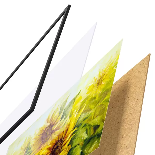Il poster è composto da cornice, plexiglass, immagine stampata e supporto in truciolato. Il poster può essere immediatamente appeso alla parete grazie ai supporti sul retro.