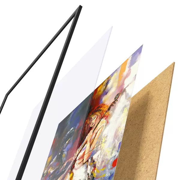 Il poster è composto da cornice, plexiglass, immagine stampata e supporto in truciolato. Il poster può essere immediatamente appeso alla parete grazie ai supporti sul retro.