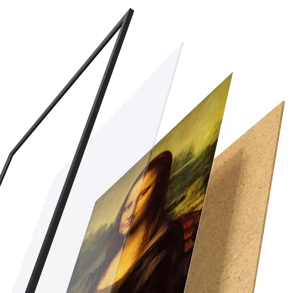 Il poster è composto da cornice, plexiglass, immagine stampata e supporto in truciolato. Il poster può essere immediatamente appeso alla parete grazie ai supporti sul retro.