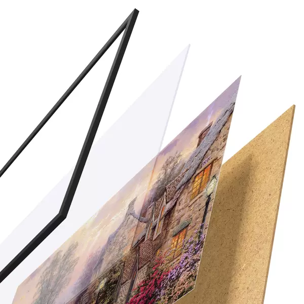 Il poster è composto da cornice, plexiglass, immagine stampata e supporto in truciolato. Il poster può essere immediatamente appeso alla parete grazie ai supporti sul retro.
