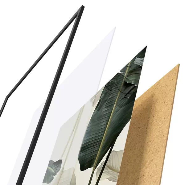 Il poster è composto da cornice, plexiglass, immagine stampata e supporto in truciolato. Il poster può essere immediatamente appeso alla parete grazie ai supporti sul retro.
