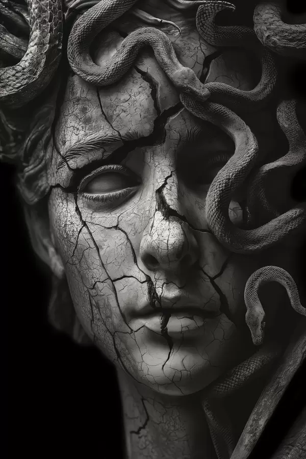 Poster Scultura Gorgone Medusa in bianco e nero f26128