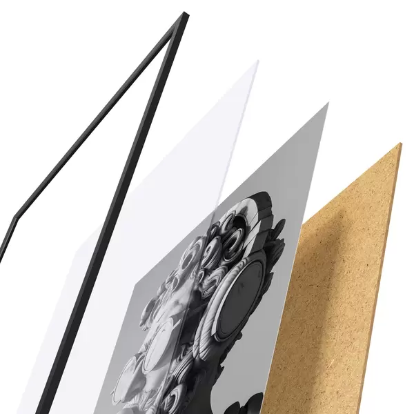 Il poster è composto da cornice, plexiglass, immagine stampata e supporto in truciolato. Il poster può essere immediatamente appeso alla parete grazie ai supporti sul retro.