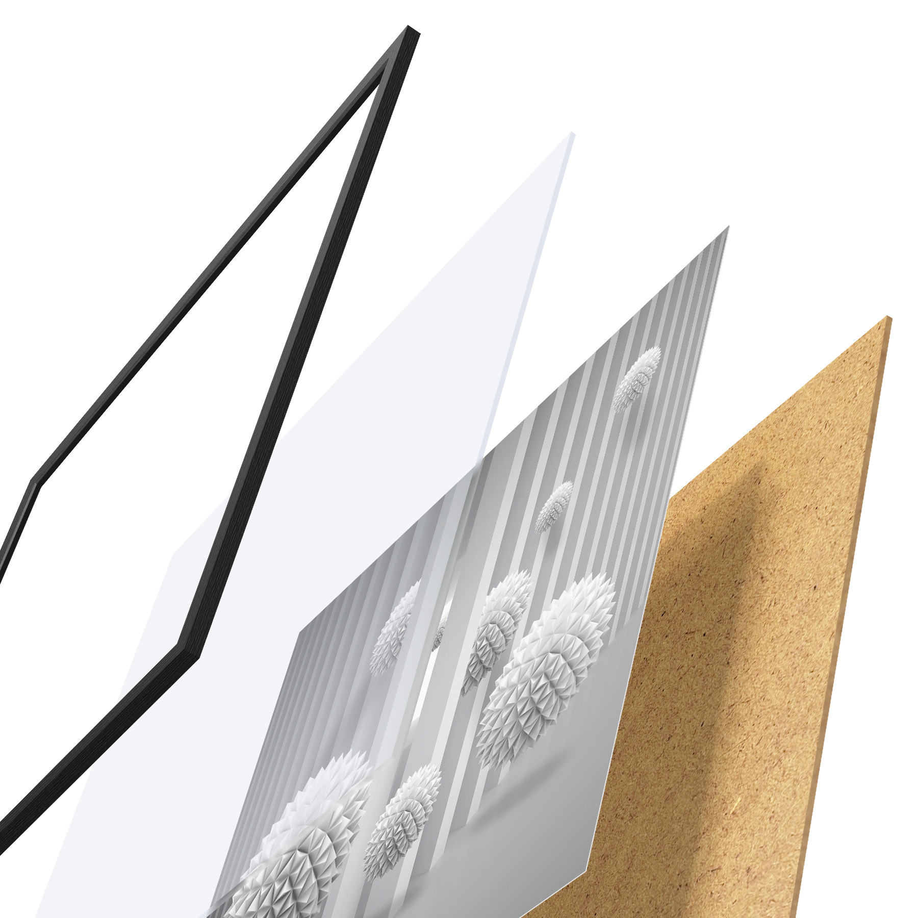 Il poster è composto da cornice, plexiglass, immagine stampata e supporto in truciolato. Il poster può essere immediatamente appeso alla parete grazie ai supporti sul retro.