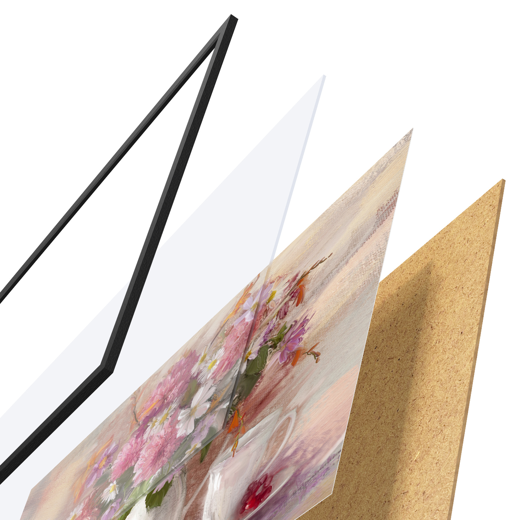 Il poster è composto da cornice, plexiglass, immagine stampata e supporto in truciolato. Il poster può essere immediatamente appeso alla parete grazie ai supporti sul retro.