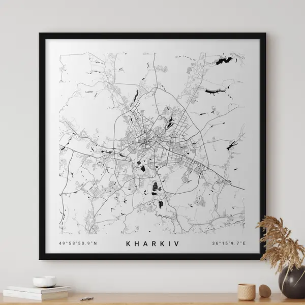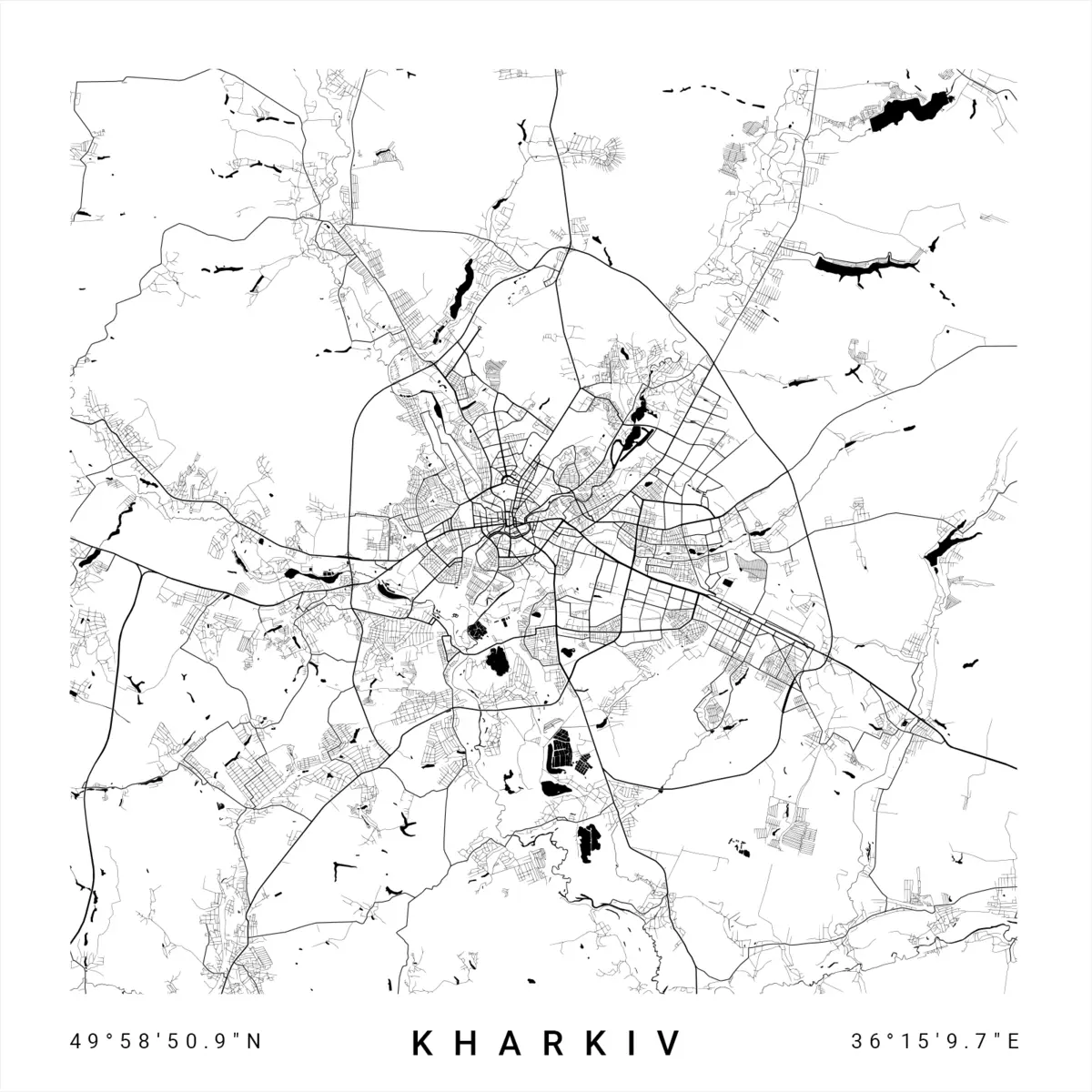 Poster Mappa minimalista della città di Kharkov in Ucraina Nr f31429v1