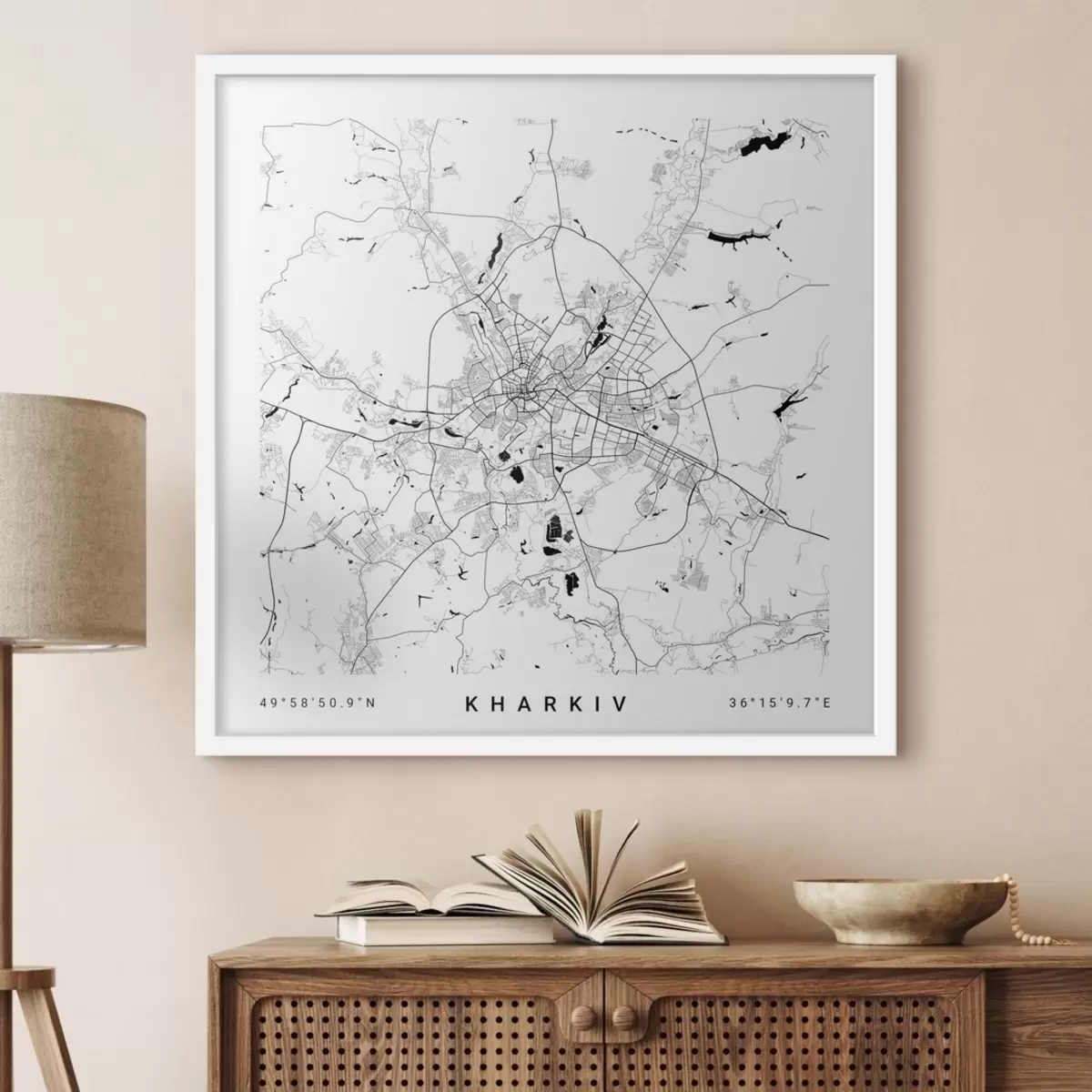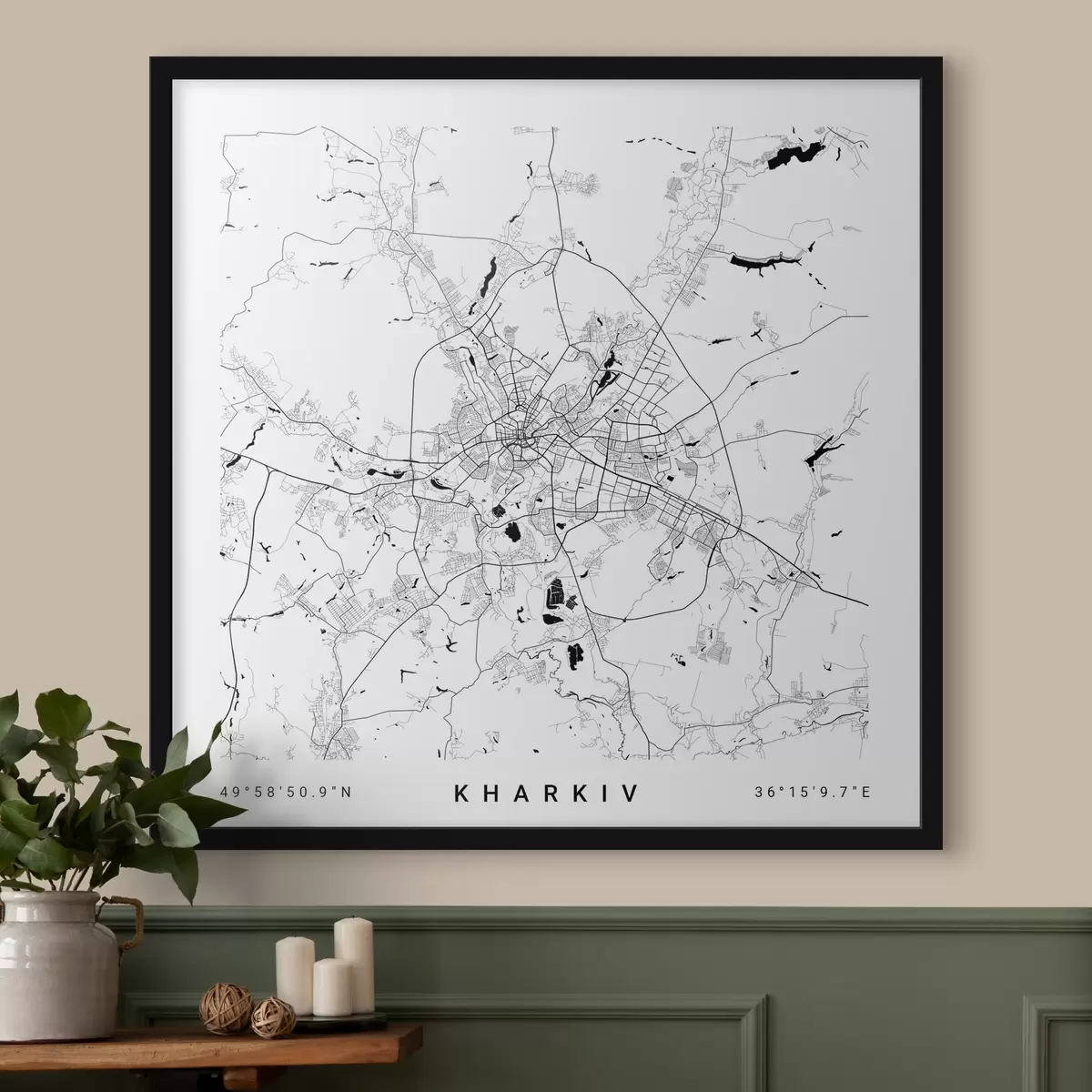 Poster Mappa minimalista della città di Kharkov in Ucraina f31429v1