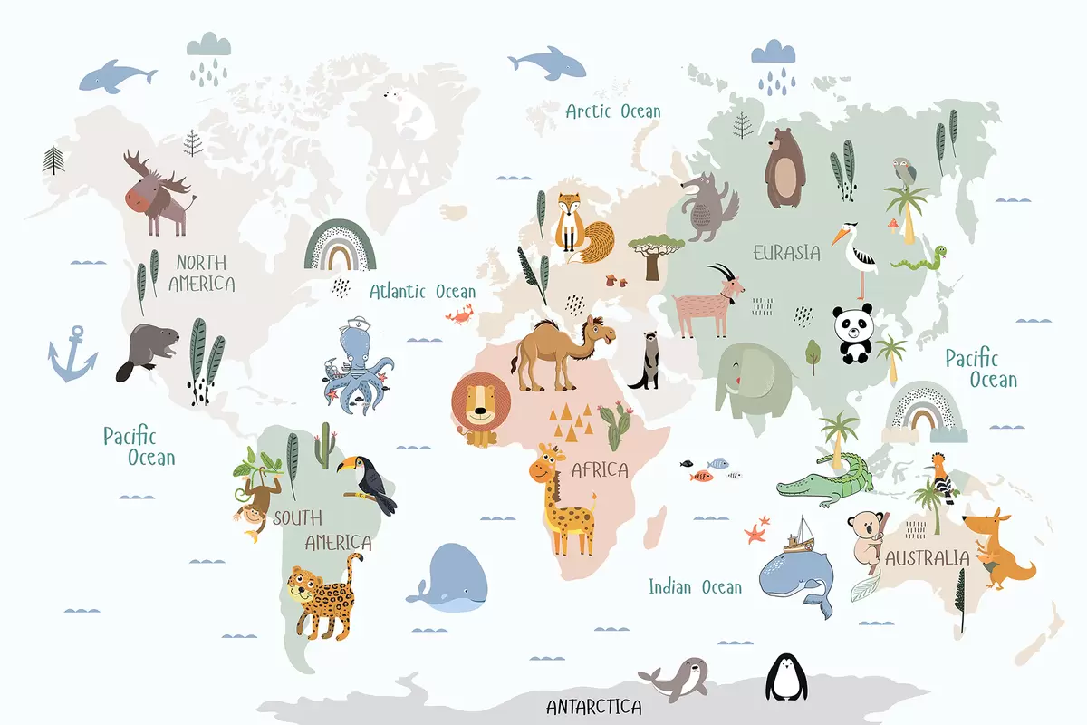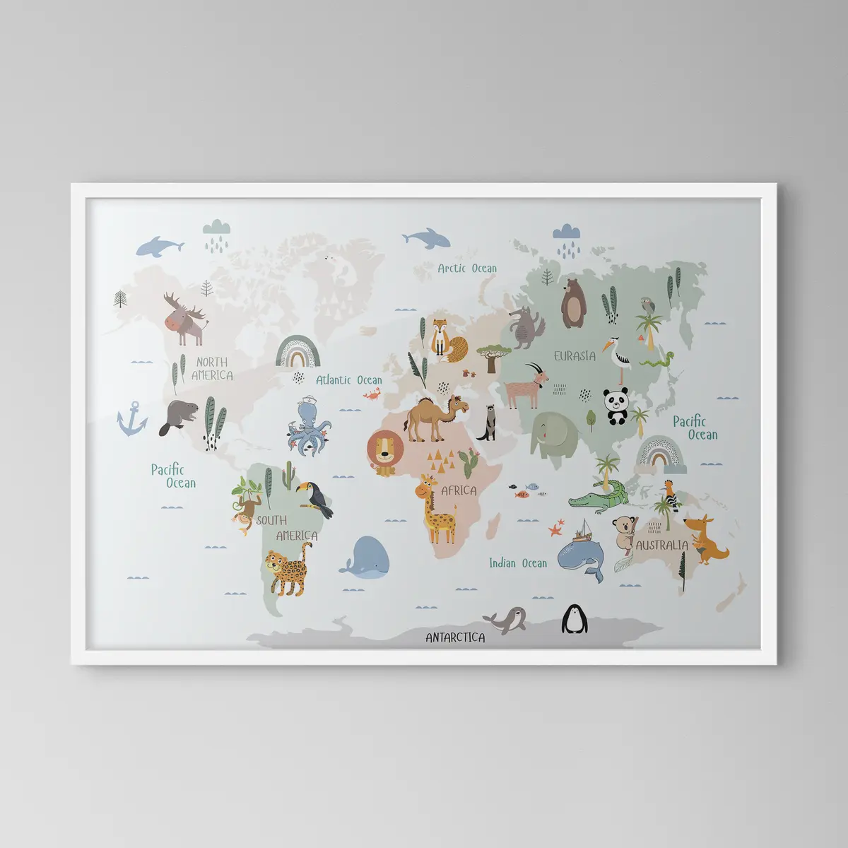 Poster Illustrazione della mappa del mondo con animali stravaganti Nr f32082