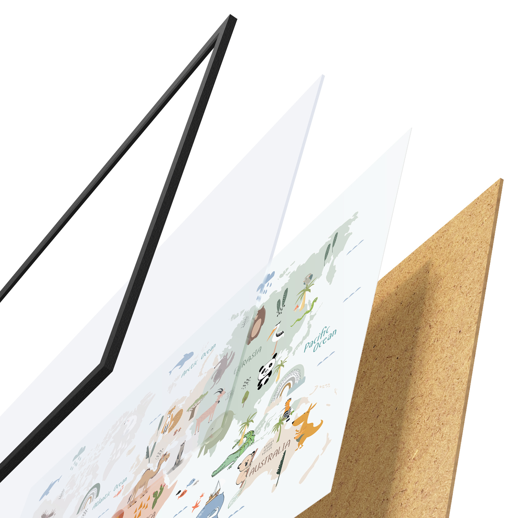 Il poster è composto da cornice, plexiglass, immagine stampata e supporto in truciolato. Il poster può essere immediatamente appeso alla parete grazie ai supporti sul retro.