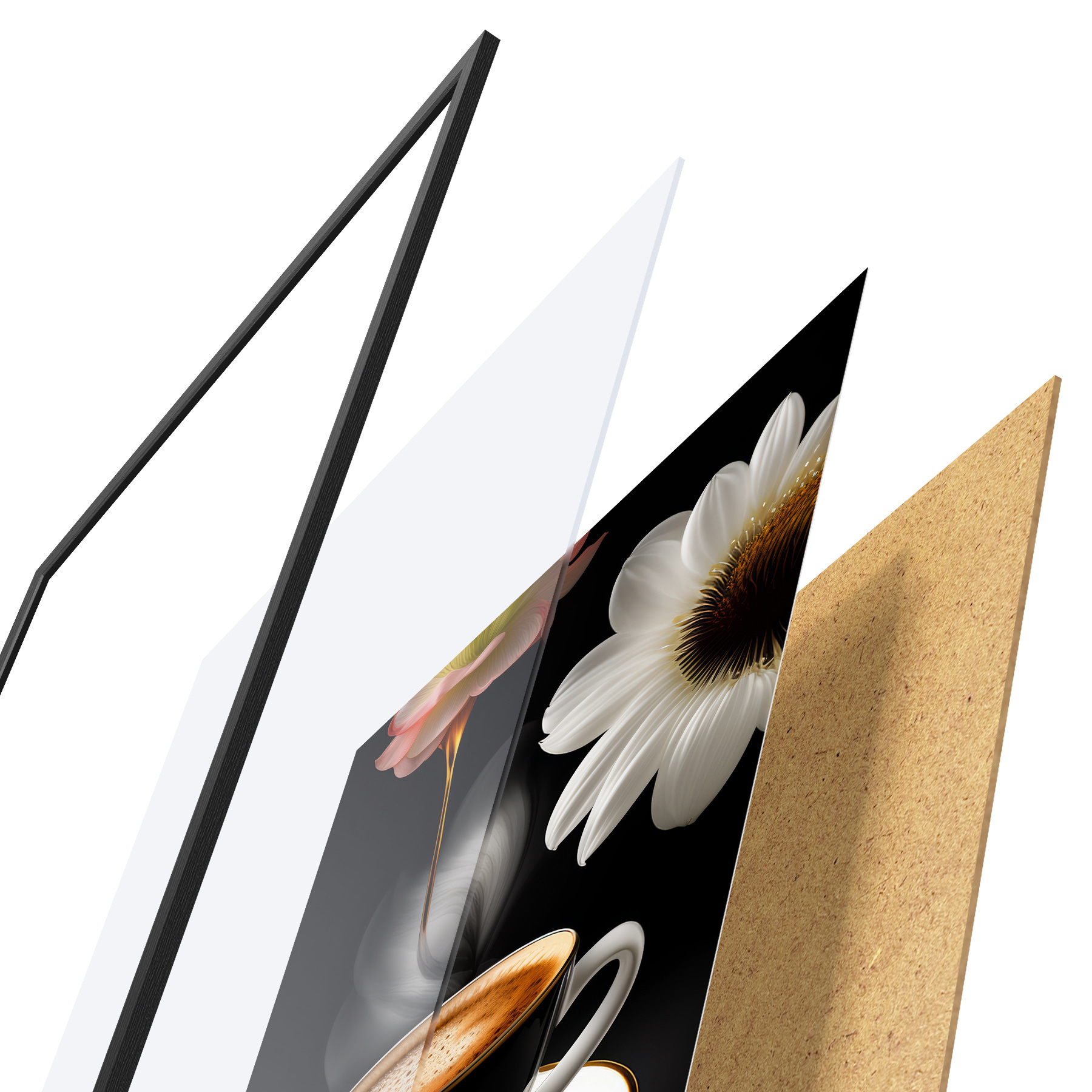 Il poster è composto da cornice, plexiglass, immagine stampata e supporto in truciolato. Il poster può essere immediatamente appeso alla parete grazie ai supporti sul retro.