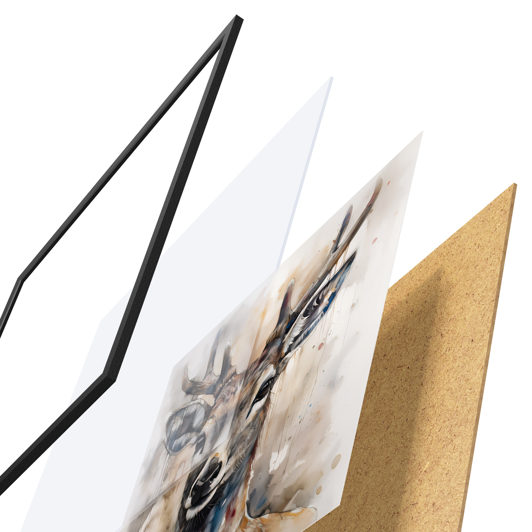 Il poster è composto da cornice, plexiglass, immagine stampata e supporto in truciolato. Il poster può essere immediatamente appeso alla parete grazie ai supporti sul retro.