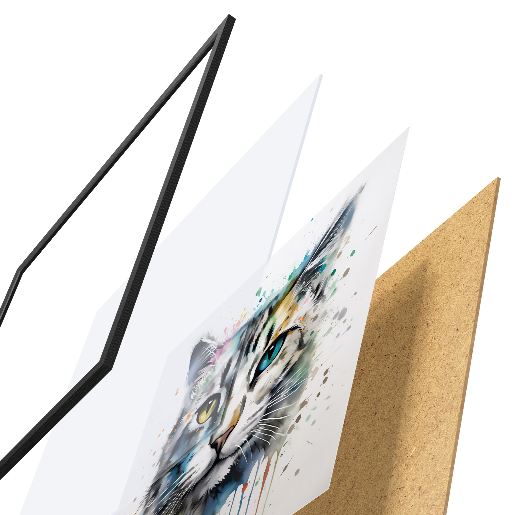 Il poster è composto da cornice, plexiglass, immagine stampata e supporto in truciolato. Il poster può essere immediatamente appeso alla parete grazie ai supporti sul retro.