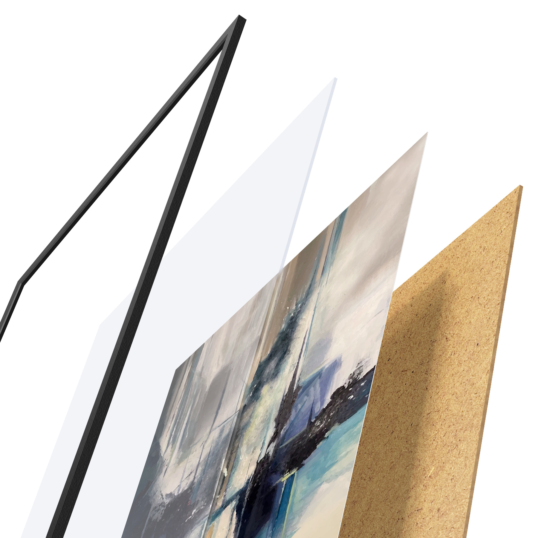 Il poster è composto da cornice, plexiglass, immagine stampata e supporto in truciolato. Il poster può essere immediatamente appeso alla parete grazie ai supporti sul retro.