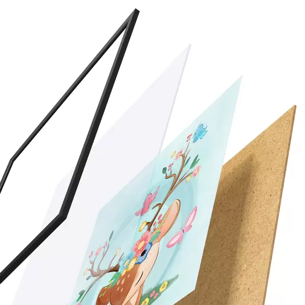 Il poster è composto da cornice, plexiglass, immagine stampata e supporto in truciolato. Il poster può essere immediatamente appeso alla parete grazie ai supporti sul retro.