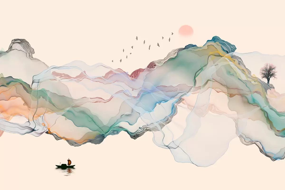 Poster Viaggio sereno attraverso paesaggi colorati f32936