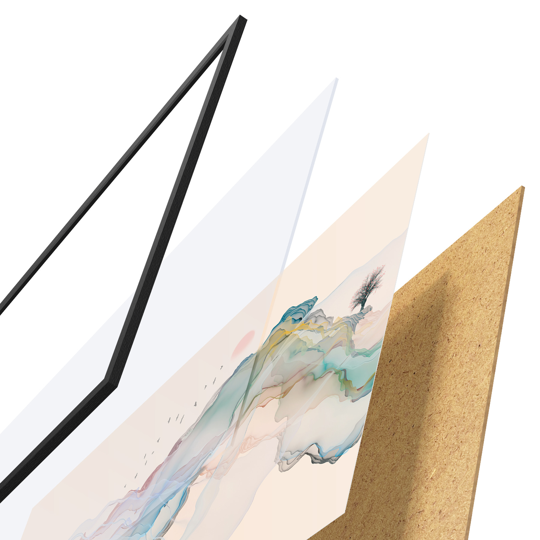 Il poster è composto da cornice, plexiglass, immagine stampata e supporto in truciolato. Il poster può essere immediatamente appeso alla parete grazie ai supporti sul retro.