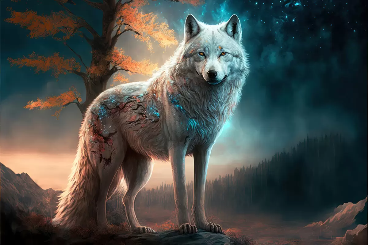Poster Un lupo maestoso in un paesaggio mistico f33528
