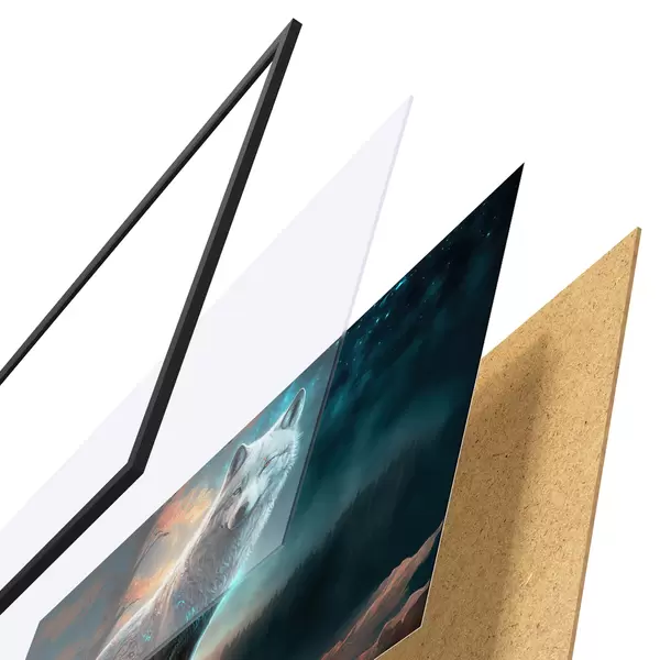 Il poster è composto da cornice, plexiglass, immagine stampata e supporto in truciolato. Il poster può essere immediatamente appeso alla parete grazie ai supporti sul retro.