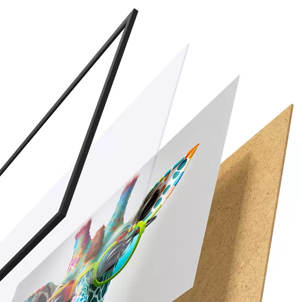 Il poster è composto da cornice, plexiglass, immagine stampata e supporto in truciolato. Il poster può essere immediatamente appeso alla parete grazie ai supporti sul retro.