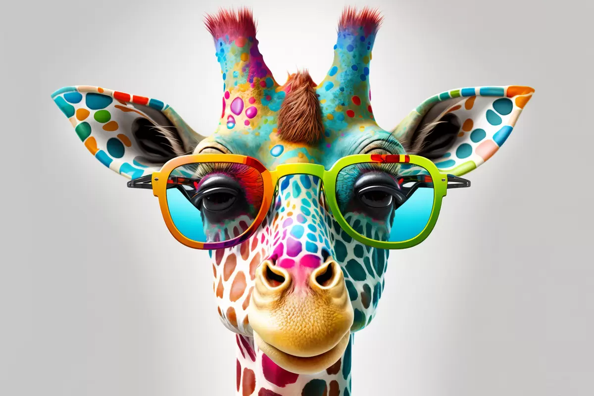Poster Giraffa colorata con occhiali alla moda Nr f33533