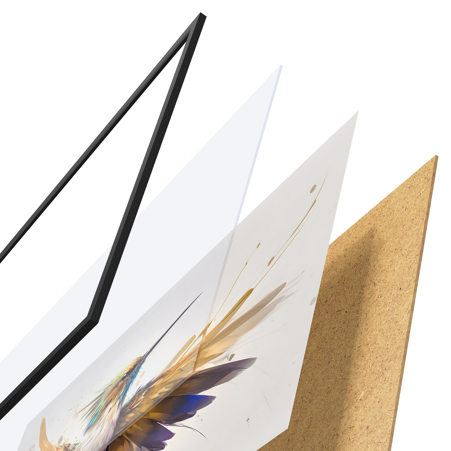 Il poster è composto da cornice, plexiglass, immagine stampata e supporto in truciolato. Il poster può essere immediatamente appeso alla parete grazie ai supporti sul retro.