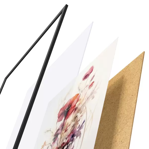 Il poster è composto da cornice, plexiglass, immagine stampata e supporto in truciolato. Il poster può essere immediatamente appeso alla parete grazie ai supporti sul retro.