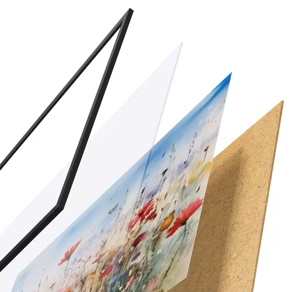 Il poster è composto da cornice, plexiglass, immagine stampata e supporto in truciolato. Il poster può essere immediatamente appeso alla parete grazie ai supporti sul retro.
