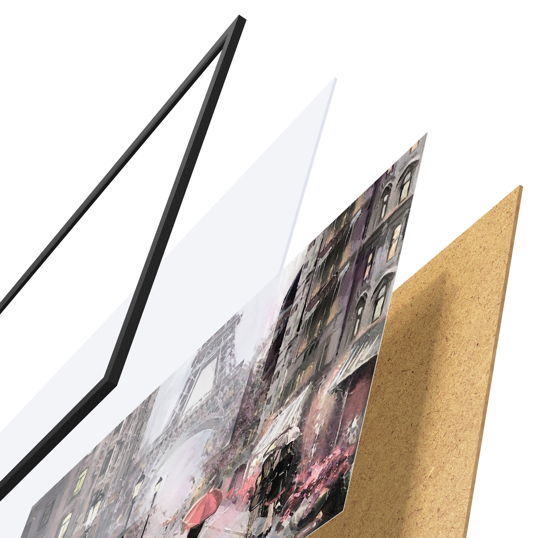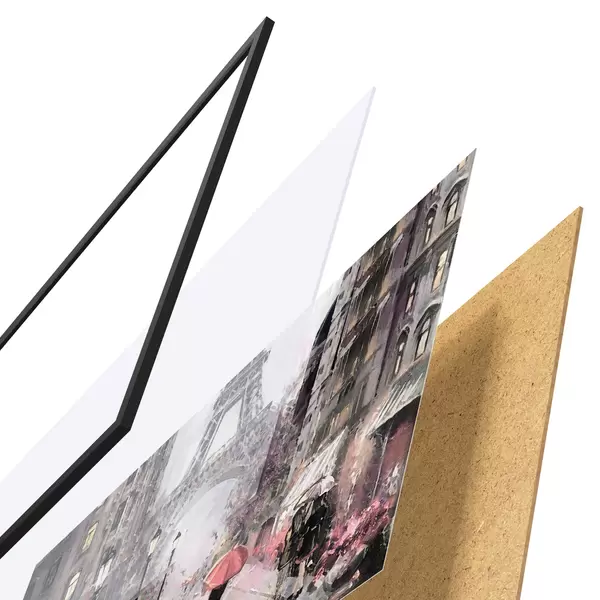Il poster è composto da cornice, plexiglass, immagine stampata e supporto in truciolato. Il poster può essere immediatamente appeso alla parete grazie ai supporti sul retro.