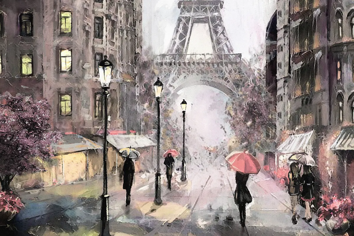Poster Passeggiata sotto la pioggia vicino alla Torre Eiffel f33719