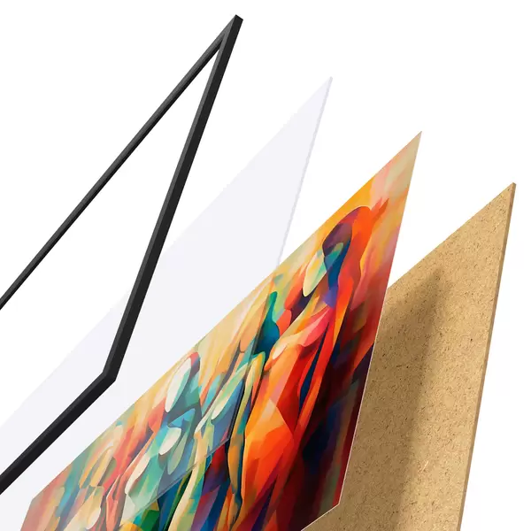 Il poster è composto da cornice, plexiglass, immagine stampata e supporto in truciolato. Il poster può essere immediatamente appeso alla parete grazie ai supporti sul retro.