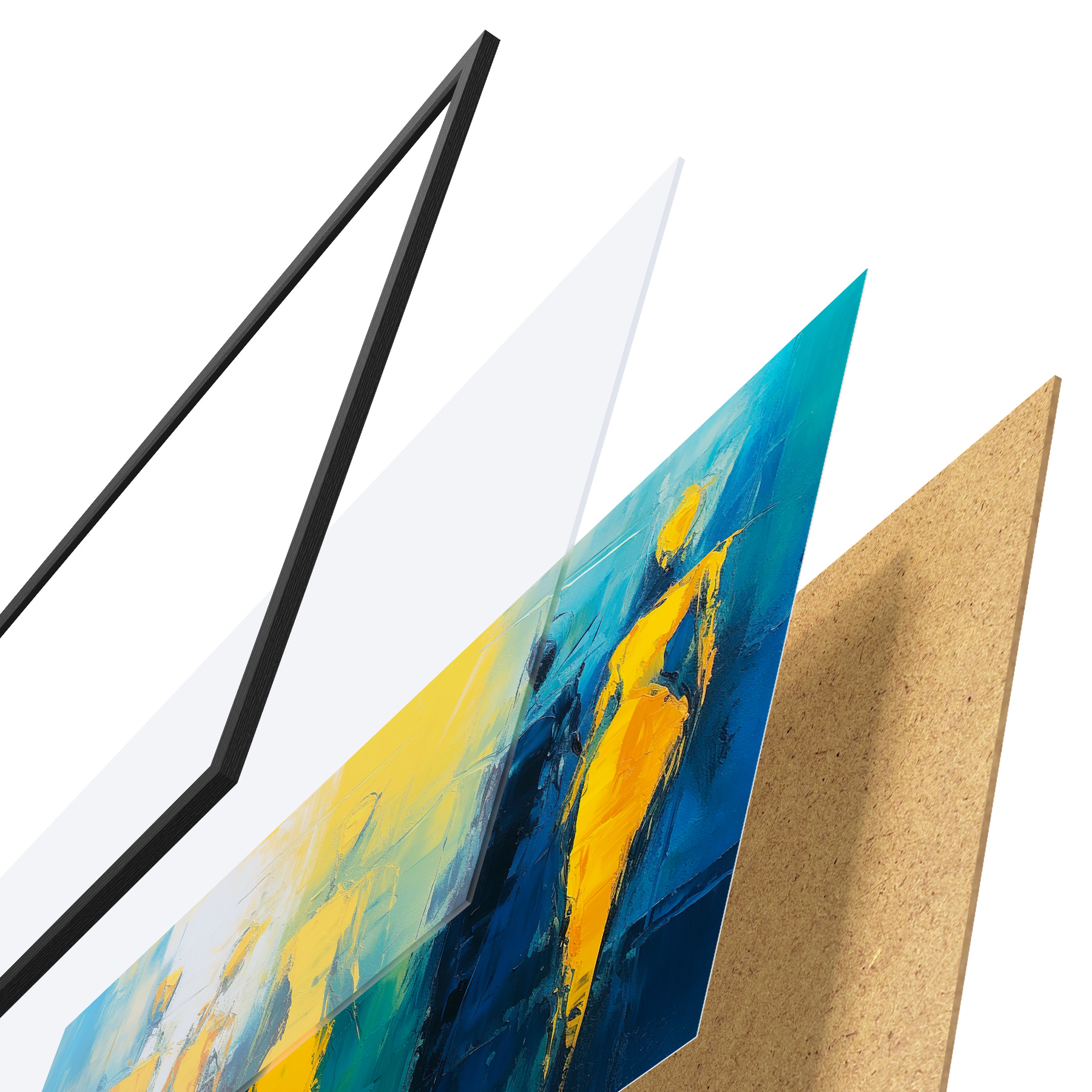 Il poster è composto da cornice, plexiglass, immagine stampata e supporto in truciolato. Il poster può essere immediatamente appeso alla parete grazie ai supporti sul retro.
