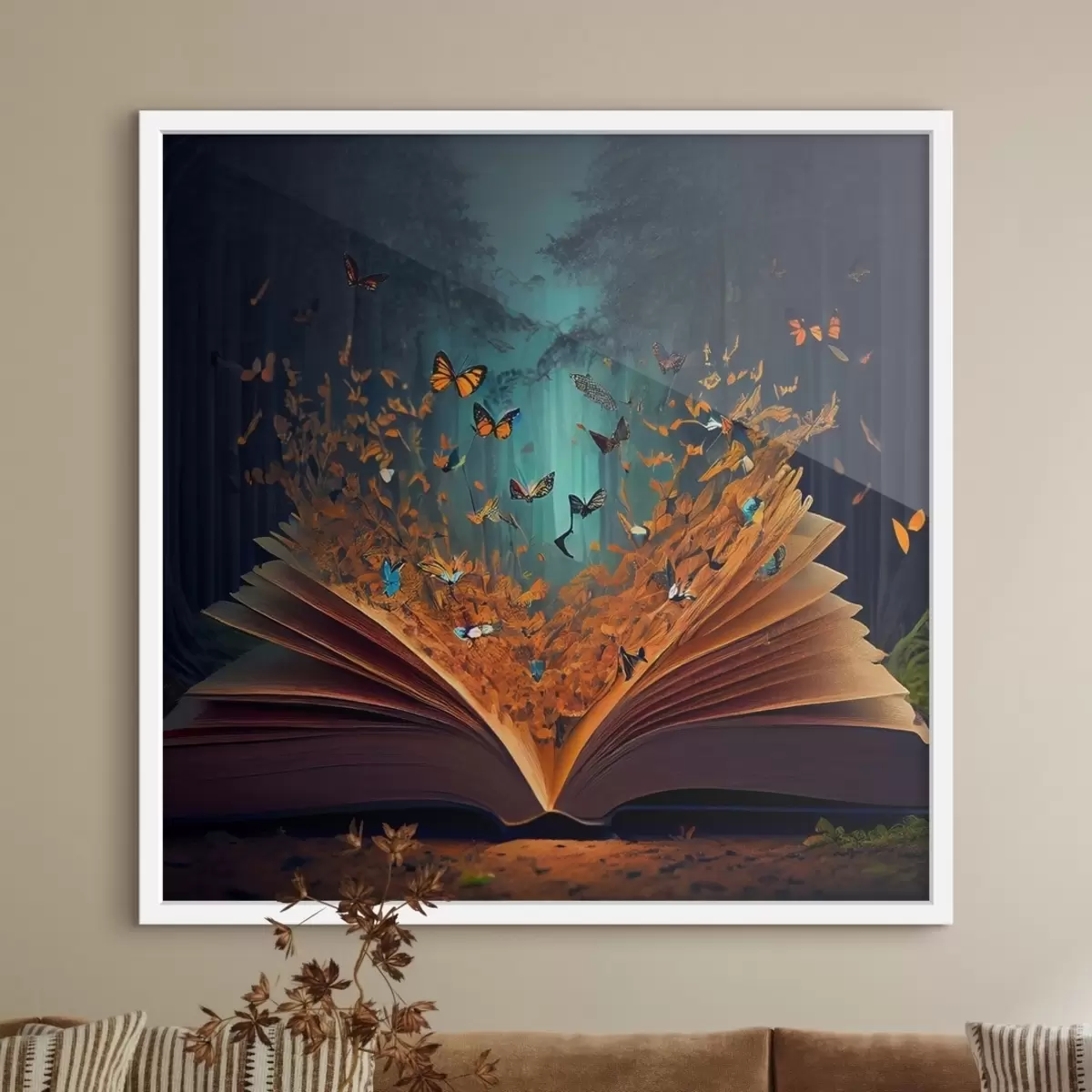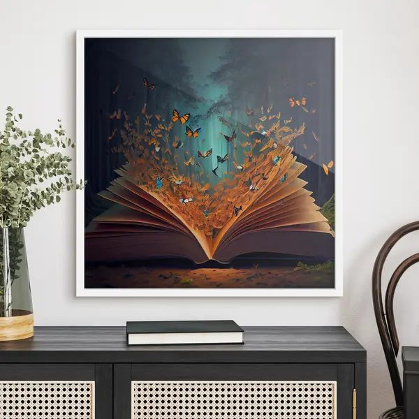 Poster Un libro di fiabe con farfalle nella foresta Nr f33915
