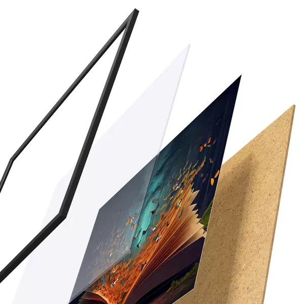 Il poster è composto da cornice, plexiglass, immagine stampata e supporto in truciolato. Il poster può essere immediatamente appeso alla parete grazie ai supporti sul retro.