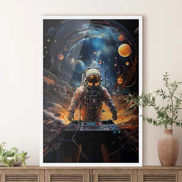 Poster Astronauta in navigazione tra le onde sonore cosmiche f34216