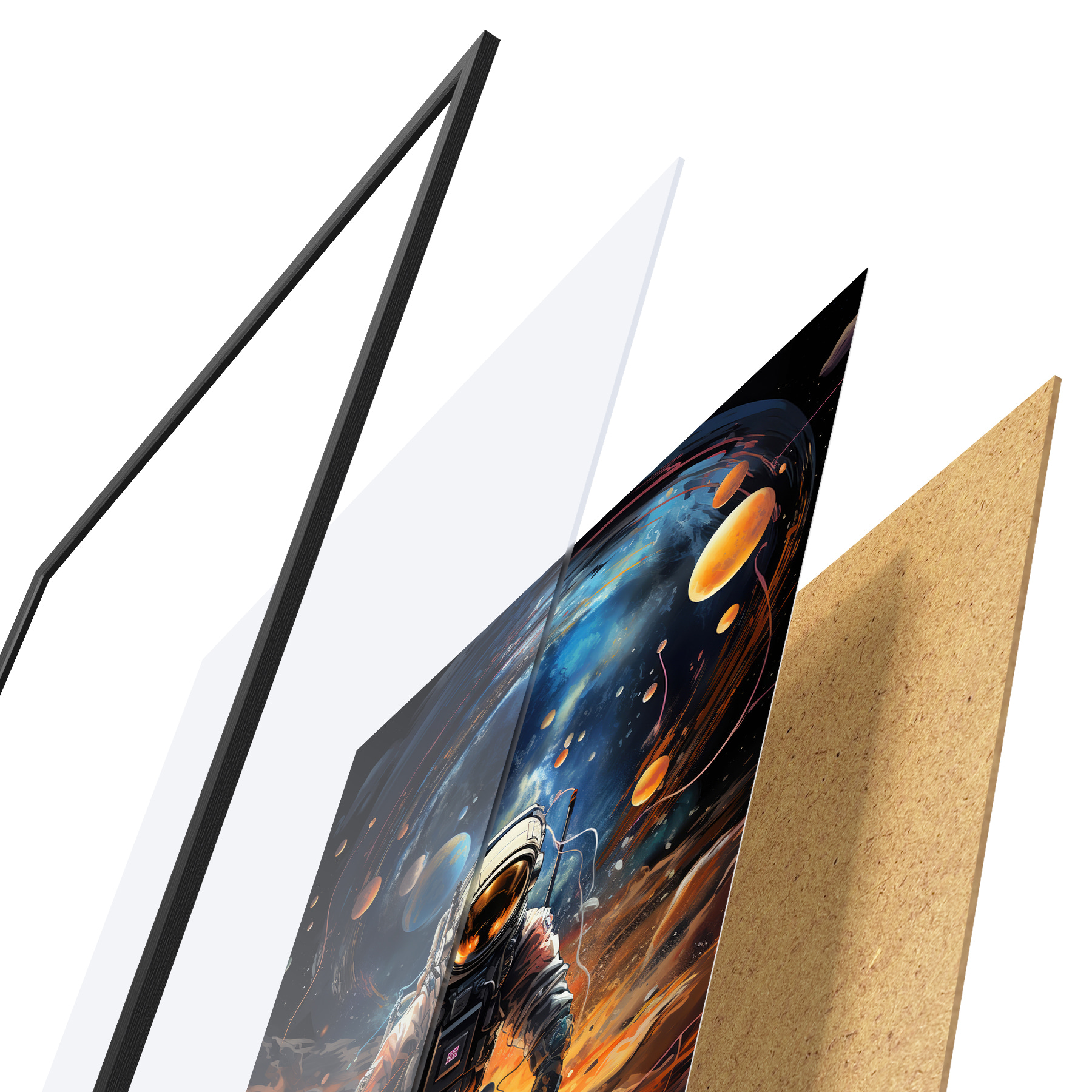 Il poster è composto da cornice, plexiglass, immagine stampata e supporto in truciolato. Il poster può essere immediatamente appeso alla parete grazie ai supporti sul retro.