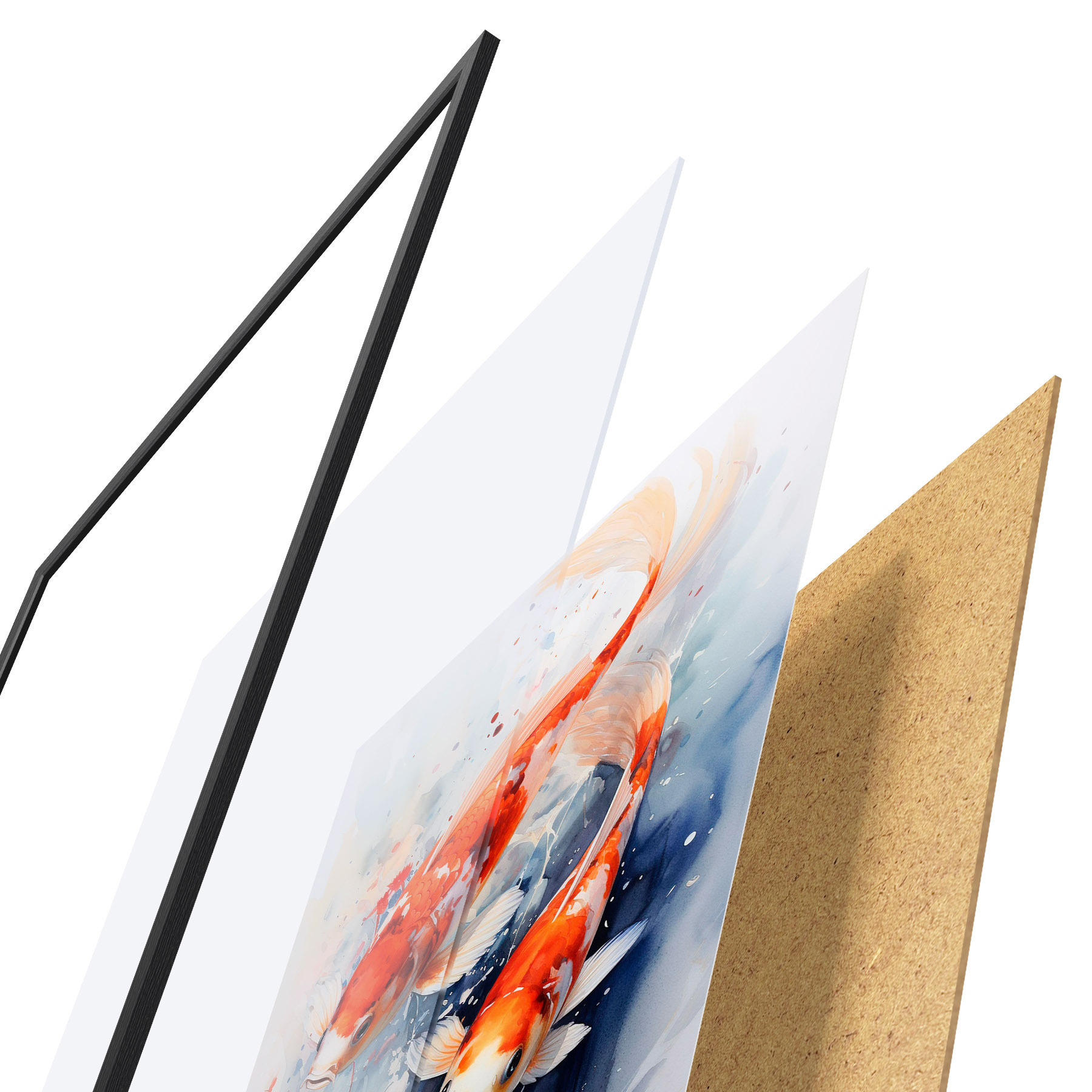 Il poster è composto da cornice, plexiglass, immagine stampata e supporto in truciolato. Il poster può essere immediatamente appeso alla parete grazie ai supporti sul retro.