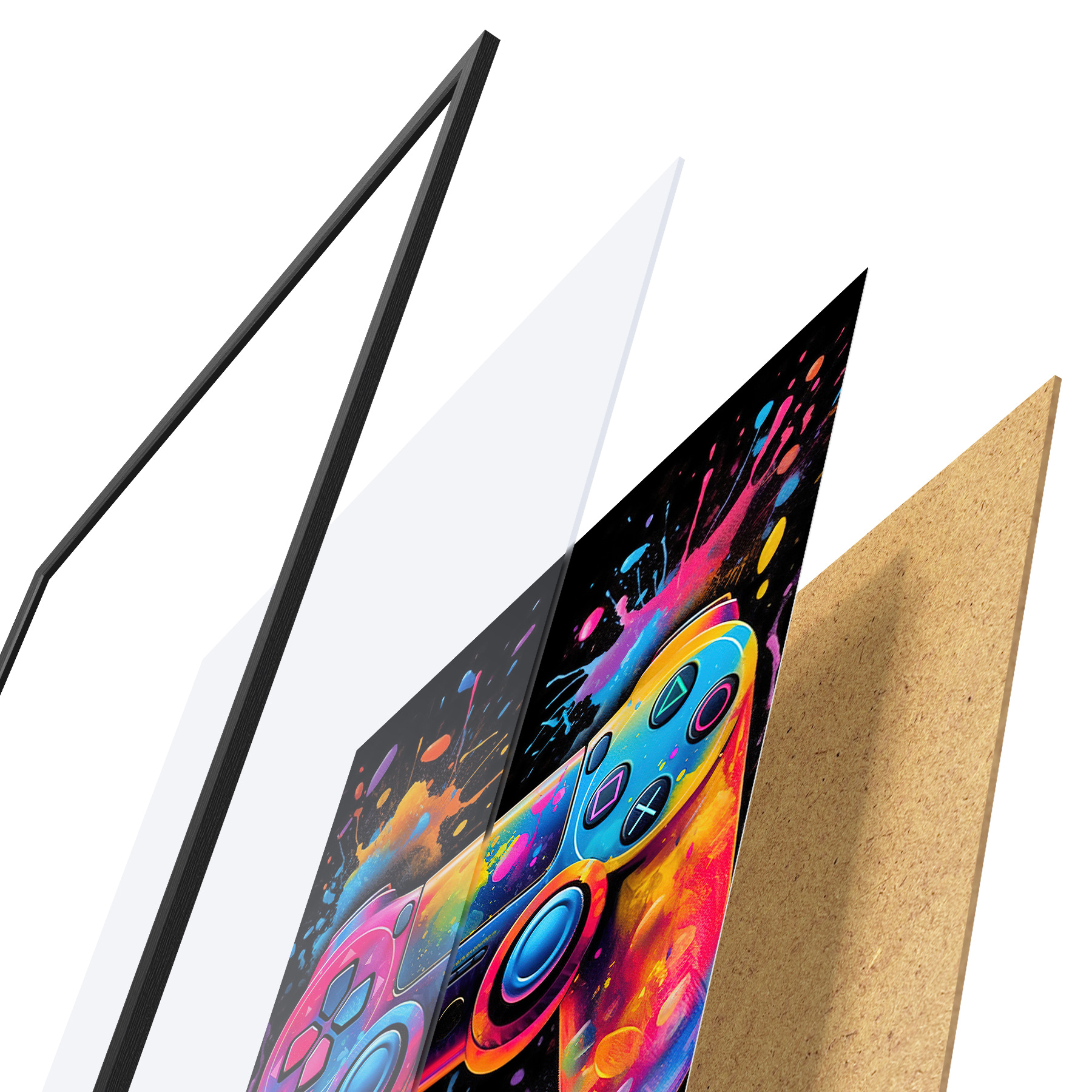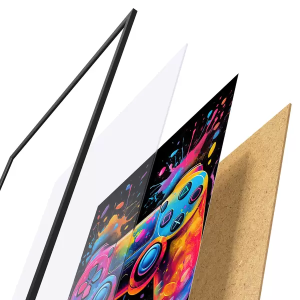 Il poster è composto da cornice, plexiglass, immagine stampata e supporto in truciolato. Il poster può essere immediatamente appeso alla parete grazie ai supporti sul retro.