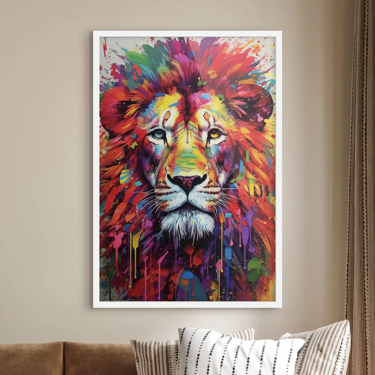Poster Il leone vibrante che emerge dai colori Nr f34283