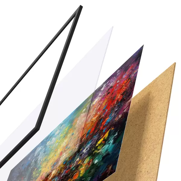 Il poster è composto da cornice, plexiglass, immagine stampata e supporto in truciolato. Il poster può essere immediatamente appeso alla parete grazie ai supporti sul retro.