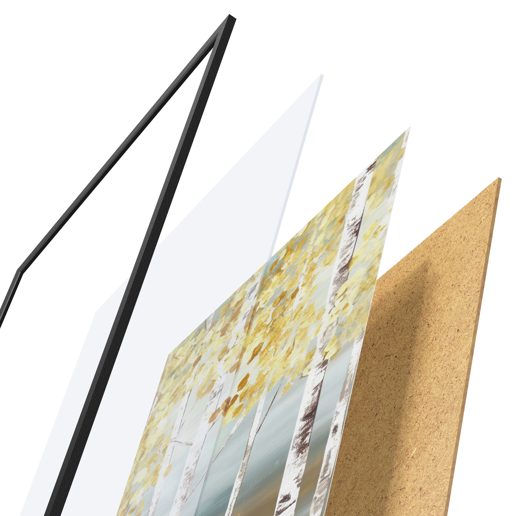 Il poster è composto da cornice, plexiglass, immagine stampata e supporto in truciolato. Il poster può essere immediatamente appeso alla parete grazie ai supporti sul retro.