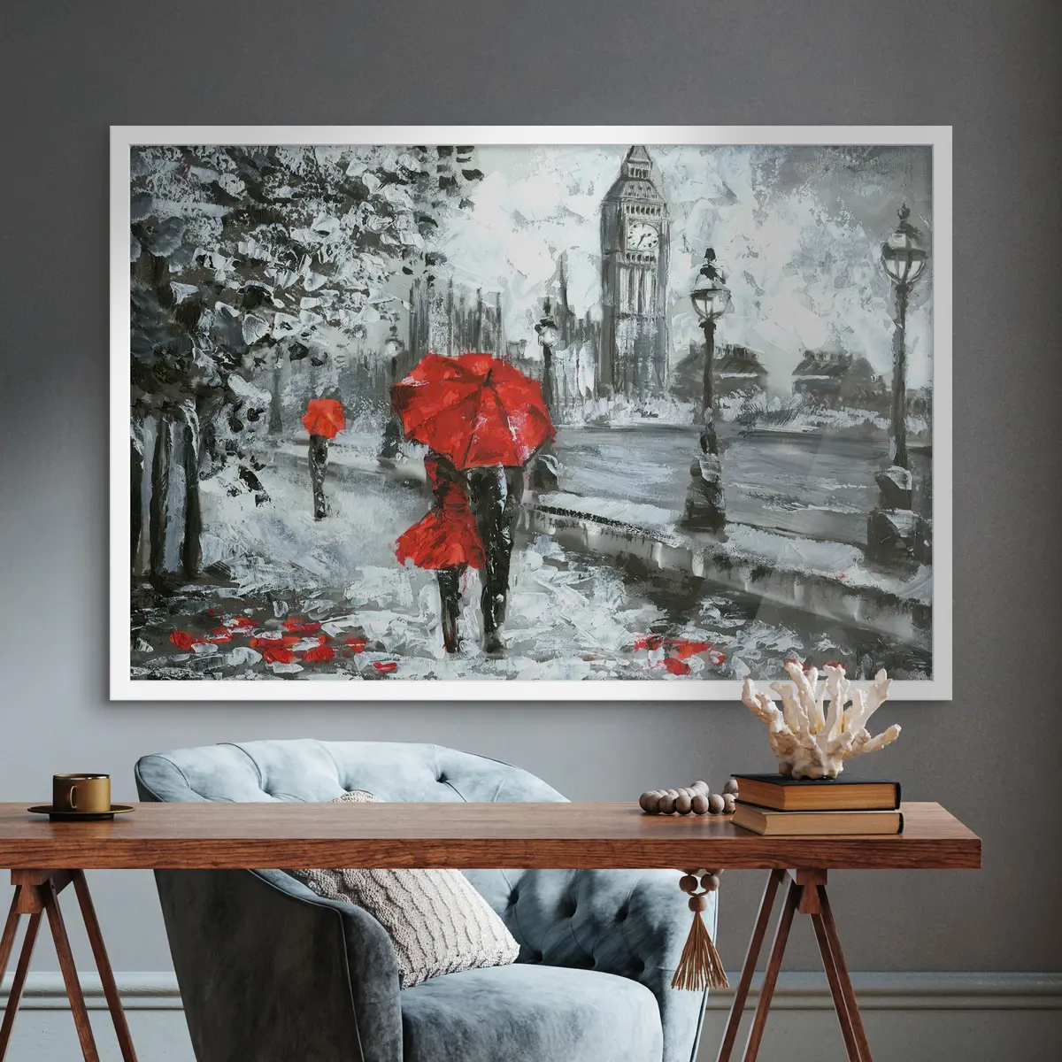 Poster Coppia sotto gli ombrelli rossi a Londra Nr f34614