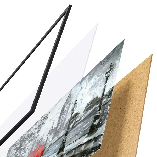 Il poster è composto da cornice, plexiglass, immagine stampata e supporto in truciolato. Il poster può essere immediatamente appeso alla parete grazie ai supporti sul retro.