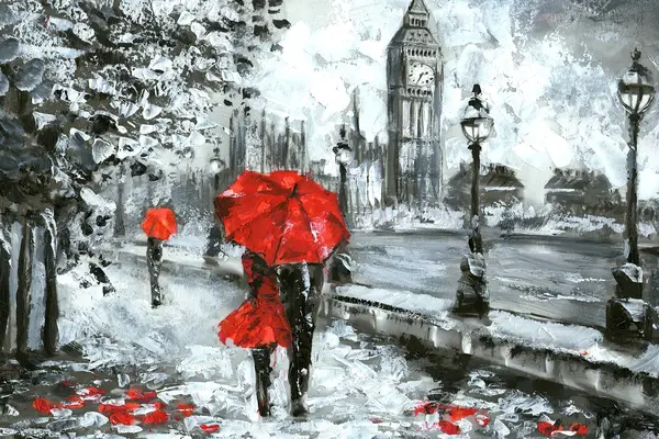 Poster Coppia sotto gli ombrelli rossi a Londra Nr f34614