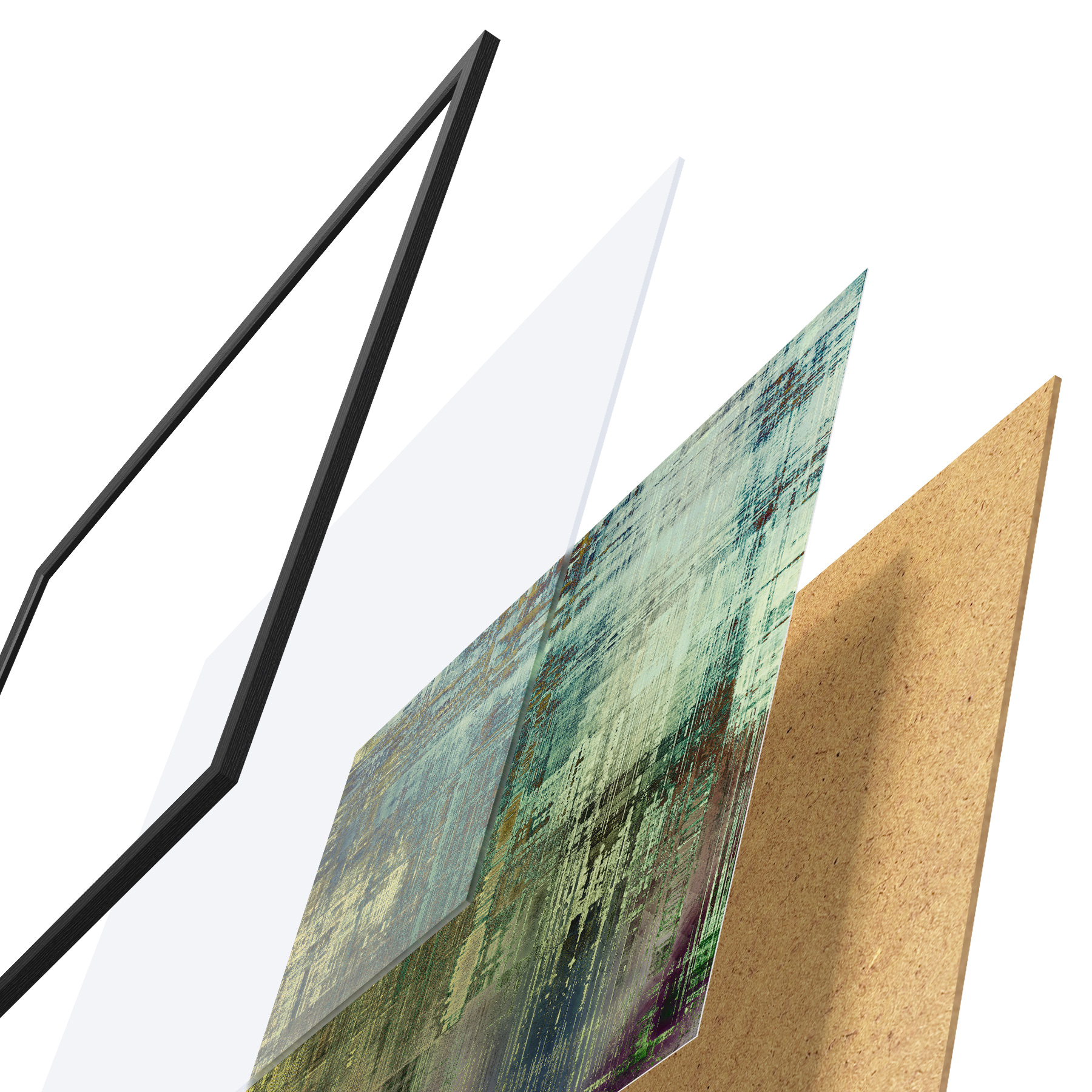 Il poster è composto da cornice, plexiglass, immagine stampata e supporto in truciolato. Il poster può essere immediatamente appeso alla parete grazie ai supporti sul retro.