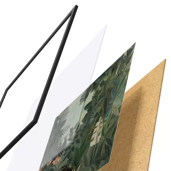 Il poster è composto da cornice, plexiglass, immagine stampata e supporto in truciolato. Il poster può essere immediatamente appeso alla parete grazie ai supporti sul retro.